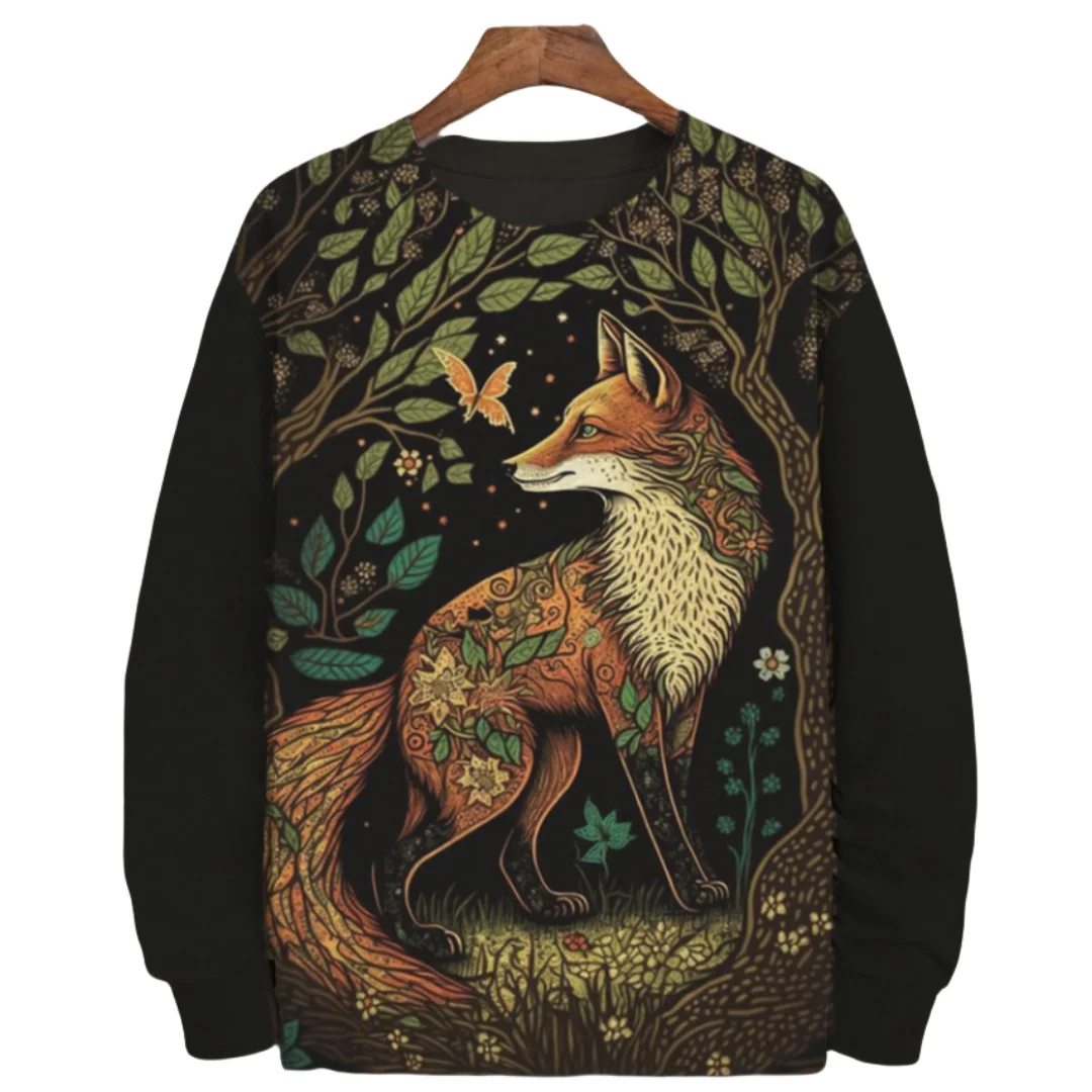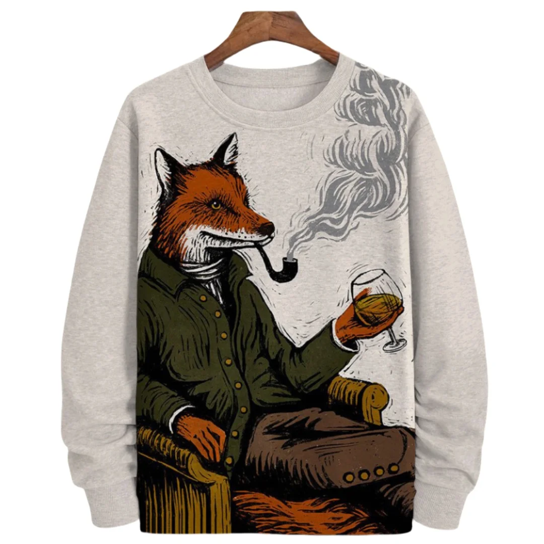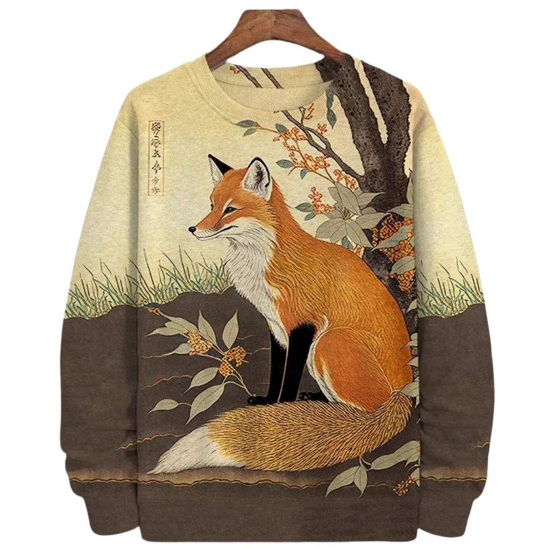 Animal Fox Printed Hoody Men Oversized Sweatshirts Hip Hop Round Neck Streetwear Clothing Loose Fleece Men's Hoodies Pullover